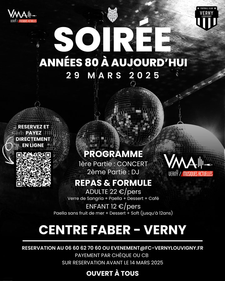 Repas dansant « des années 80 à aujourd'hui » organisée par le Football Club Verny Louvigny et Verny Musiques Actuelles