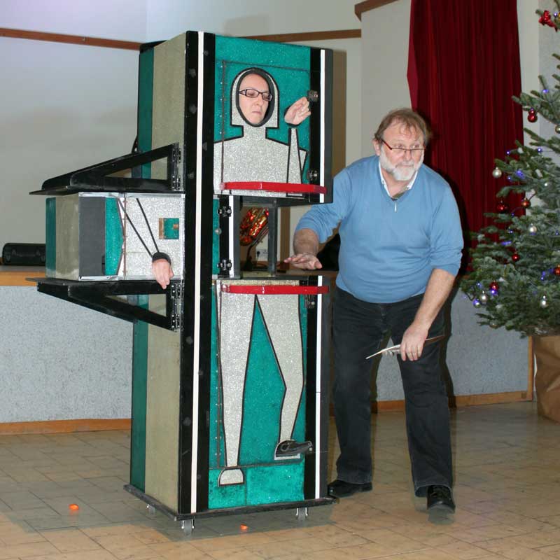 Pendant l’apéritif l’illusionniste Yves-Marie Huchin a « coupé en trois » une conseillère municipale avant d’impressionner à nouveau l’assistance avec un numéro de mentalisme.