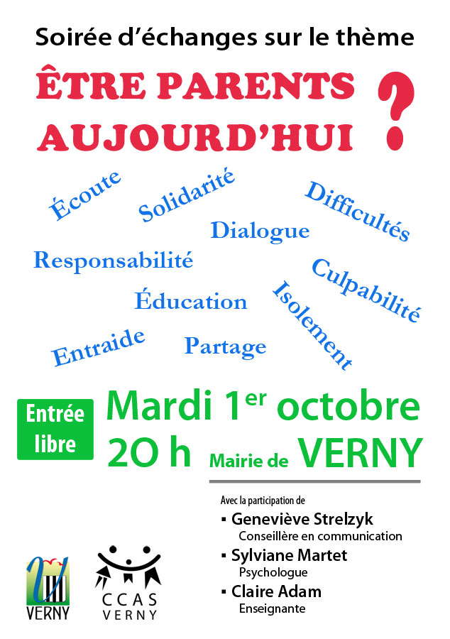 - Mardi 1er à 20 h à la mairie les parents sont invités à se réunir avec une équipe de professionnels pour échanger leur expérience, leurs idées sur le thème « être parents aujourd’hui ? ».