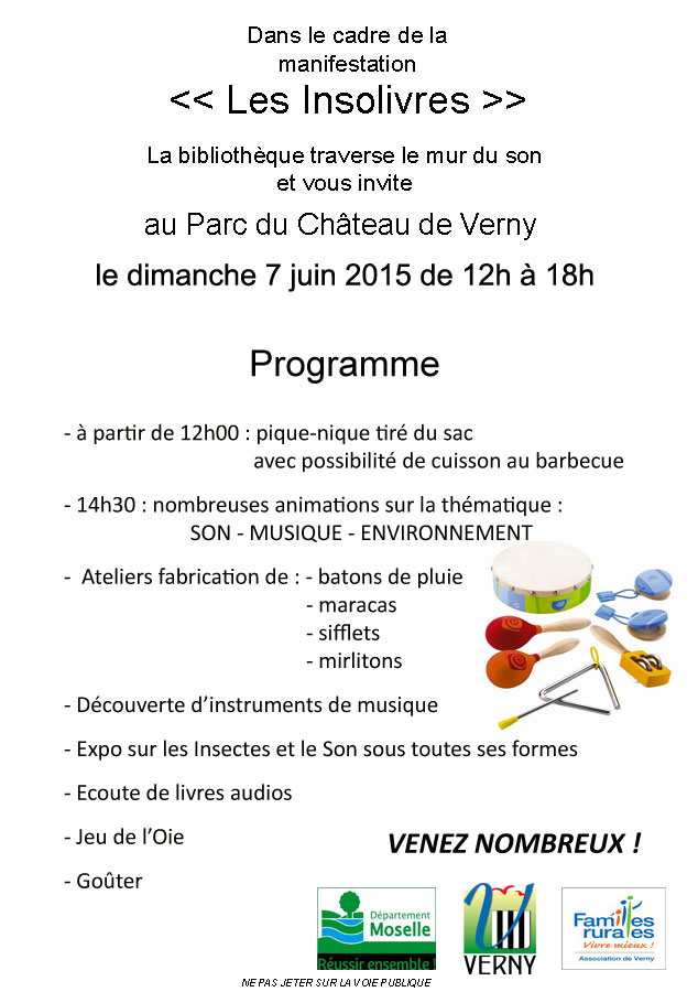 Rendez vous dimanche 21 juin pour la fête de la musique, à partir de 14 h 30 au Parc du Château.